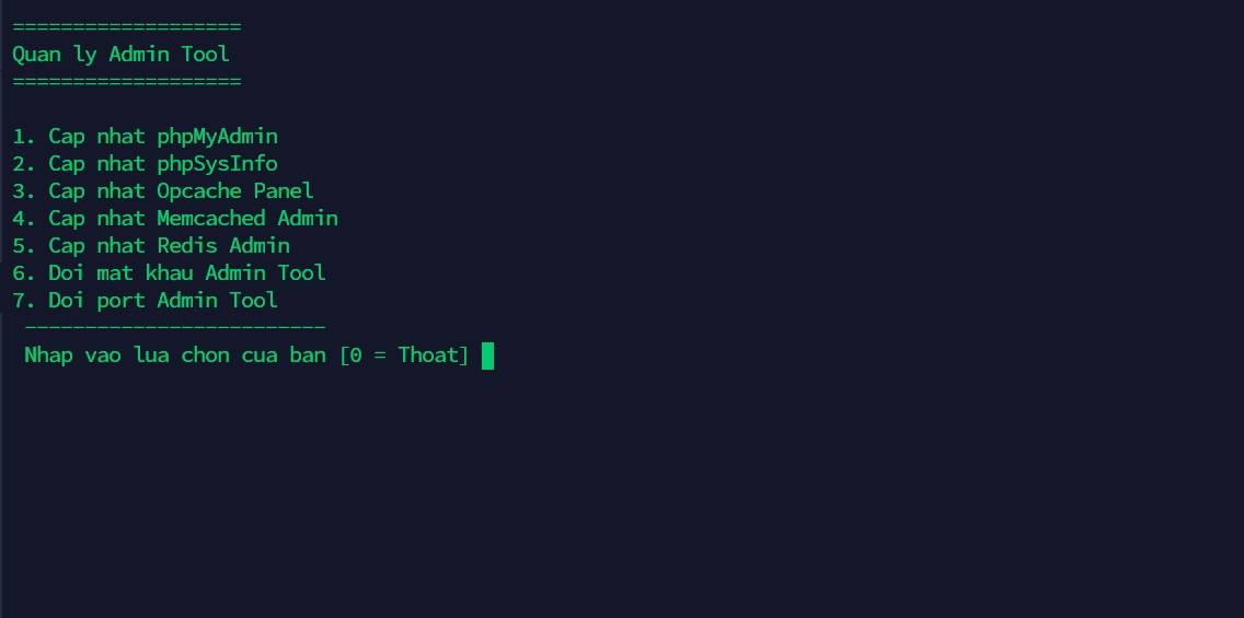 Chức năng Admin Tool cung cấp cho bạn các tùy chọn liên quan tới việc update các dịch vụ bạn đang cài đặt trên VPS.