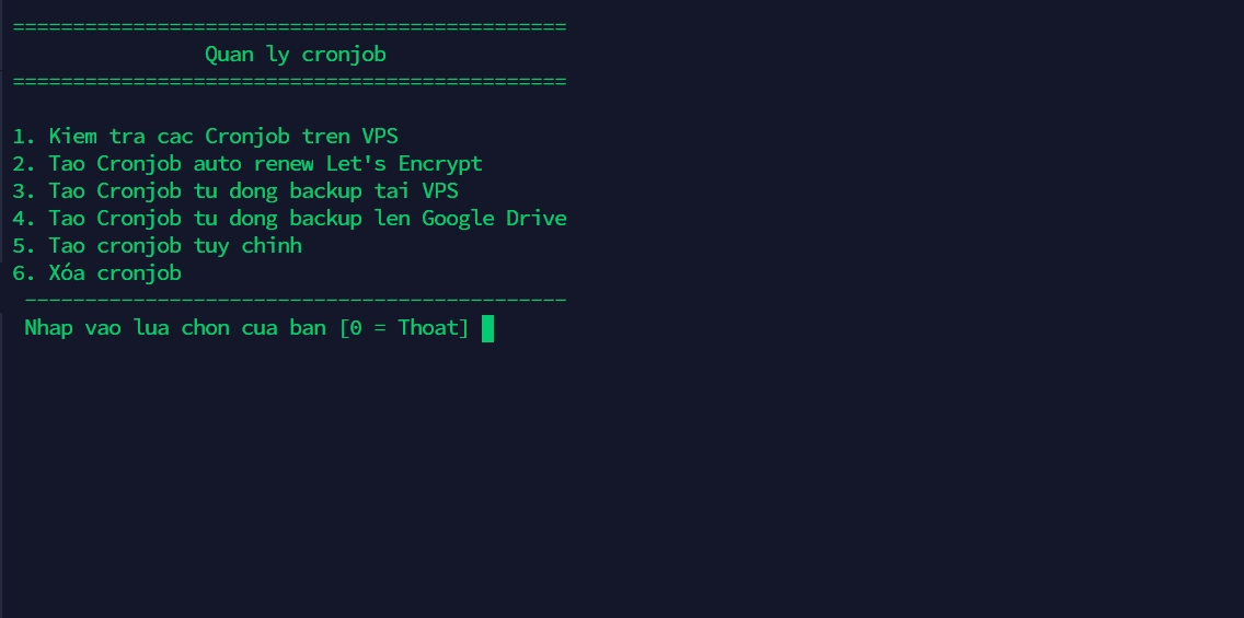Chức năng này sẽ xóa các cron được cài đặt trên VPS của bạn một cách đơn giản.